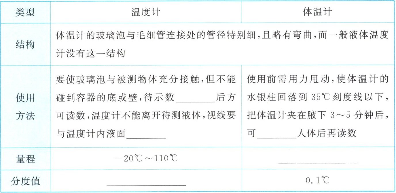1. 温度计和体温计