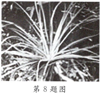 8. 近日,水生植物调查组在浙江省杭州市临安区的某一池塘边发现“植物界大熊猫”——中华水韭,如图所示。据了解,中华水韭是中国特有的濒危水生植物,是出现于数亿年前的活化石。其根茎肉质,块状;叶多汁,草质,鲜绿色,线形;用孢子繁殖。请据此判断该植物的类型是: