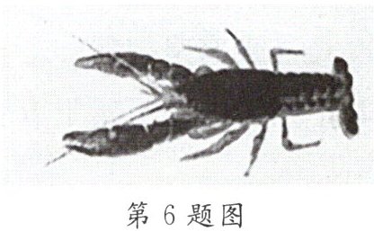 6. 如图所示的克氏原螯虾(俗称“小龙虾”)是一种主要生活在淡水中的节肢动物,原产于墨西哥北部和美国南部,在我国为外来入侵生物。请回答: