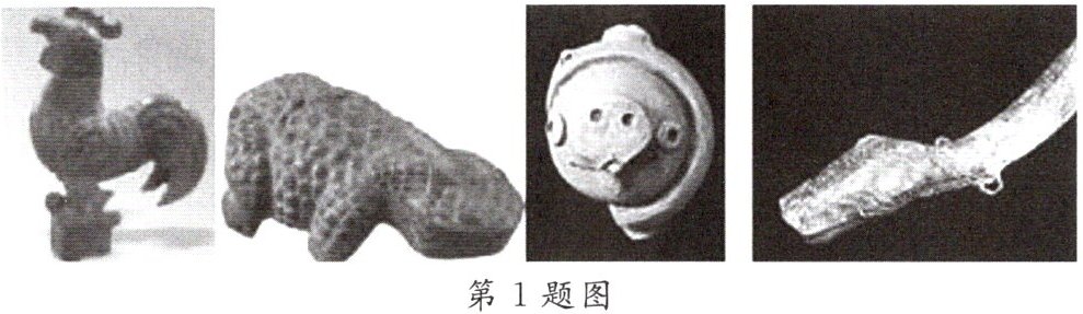 1. 三星堆遗址是人类历史上最伟大的考古发现之一,被誉为“长江文明之源”。从首次发掘至今,出土了大量珍贵文物,图中所示依次为从三星堆中出土的铜鸡、石蟾蜍、陶猪和铜蛇。