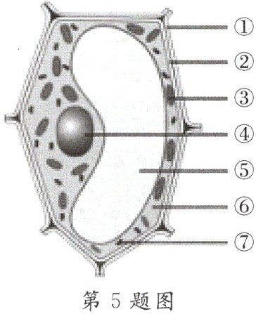 。【解析】本题的难点是理解细胞的基本结构及其功能。我们可以从细胞各基本结构的功能进行分析。第(1)题,细胞壁能支持细胞,杨梅树高大挺拔与细胞壁有关;第(2)题,植物细胞中进行光合作用的场所是叶绿体;第(3)题,液泡内含有细胞液,溶解有多种物质,因此杨梅流出的红色汁液来自细胞的液泡;第(4)题,细胞膜的功能是控制物质的进出,白酒变成红色是因为酒精破坏了细胞膜。