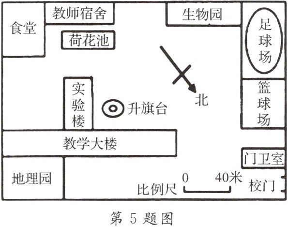 5. 如图为某学校平面图, 读图完成下列问题。