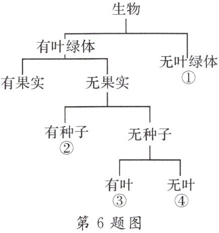 6. 任意选择4种生物进行分类,并用表解形式编制二歧分类检索表。