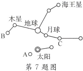 材料:天空中曾出现过一种罕见的天象,太阳、月球及太阳系除地球外的七颗行星及冥王星相对于地球在相互垂直的两条直线上,构成“十字连星”状,如图所示。