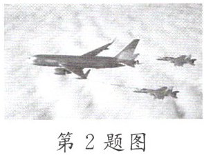 2. 如图是飞机在空中加油时的情景。若以地面的树木为参照物,受油机是