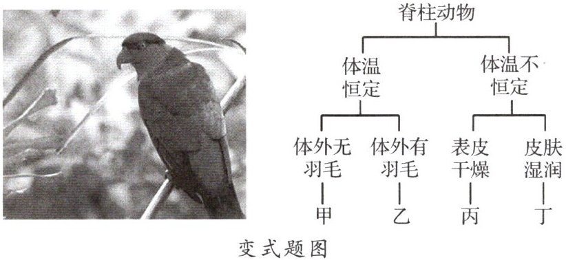 变式. 国家一级重点保护物种——彩鹦,体表被青铜栗色的羽毛。在如图所示的分类检索表中,彩鹦的位置是(
