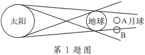 1. 如图,由于光是沿直线传播的,背对太阳的方向会产生地球的影子,A区域是地球的