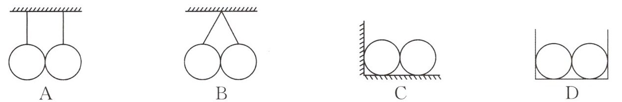【解析】本题的难点是判断物体之间是否一定存在力的作用。可以从物体间产生力的作用需要有推、拉、提、压等力的作用形式的角度进行分析判断。选项A、C、D中,两球之间虽然相互接触,但是不一定相互挤压,所以不一定存在力的作用;选项B中的两球之间接触并相互挤压,所以一定存在力的作用。