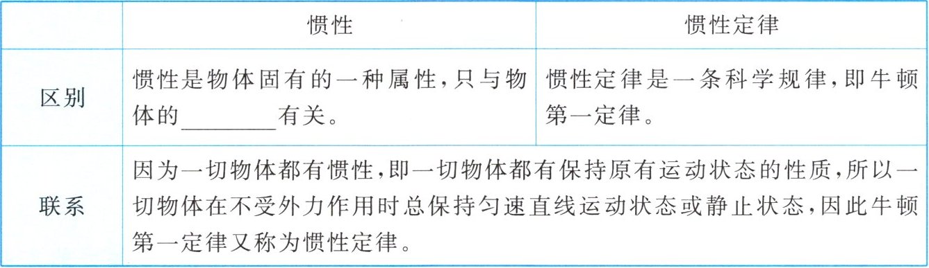 | 区别 | 惯性是物体固有的一种属性,只与物体的