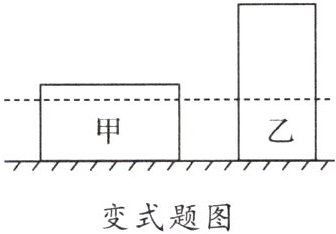 变式. 如图所示,密度均匀的长方体甲和乙放置在水平地面上,现沿水平虚线切去部分后,使甲、乙剩余部分的高度相等。若甲、乙的剩余部分对地面的压力相等,则原来甲、乙对地面的压强 $ p_甲 $、$ p_乙 $ 和压力 $ F_甲 $、$ F_乙 $ 的关系正确的是(