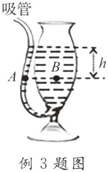 $ p_B $(填“大于”“小于”或“等于”)。(2) 装有水的玻璃杯总质量为 $ 0.28kg $,放置在水平桌面上,杯底与桌面的接触面积为 $ 4cm^2 $,此时杯子对桌面的压强为多少?