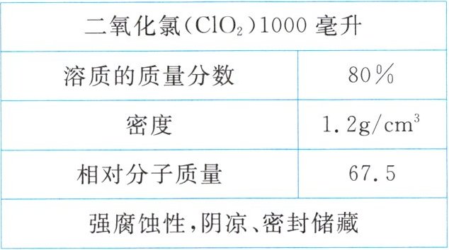 5. 目前,通过二氧化氯消毒液对空气消毒是预防甲型 $H1N1$ 型流感最有效方法之一。学校决定放学后对教室全面消毒,小科观察到瓶上的标签如下所示。求: