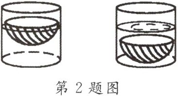 2. 如图所示,先将半个西瓜皮轻轻放在水缸中,发现它漂在水面上,此时它受到的浮力大小为$F_{浮1}$。然后把它按入水面下,发现它沉入水底,此时它受到的浮力大小为$F_{浮2}$。则$F_{浮1}与F_{浮2}$的大小关系是(