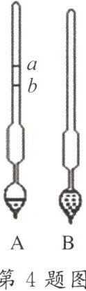 )A.图中密度计A上面的刻度值“a”大于刻度“b”