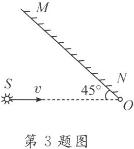 3. 有一个点光源 $ S $,放在平面镜 $ MN $ 前,若镜 $ MN $ 不动,光源 $ S $ 以速度 $ 2m/s $ 沿与镜面成 $ 45^{\circ} $ 角的方向向右匀速直线运动,如图所示,则光源 $ S $ 在镜中的像 $ S' $ 将(
