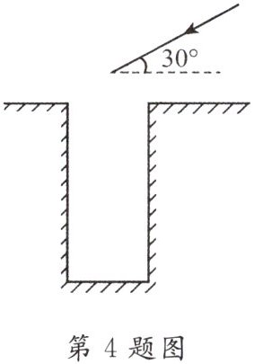 4. 如图所示,一束与水平面成 $ 30^{\circ} $ 夹角的太阳光经平面镜反射后竖直射入井中,在图中画出反射光线和平面镜的位置。