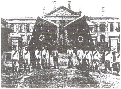 材料二:起义官兵在湖北军政府大门前合影(下图)。