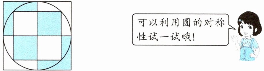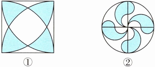 以圆的半径为直径,在相邻两条半径组成的直角处,画四个半圆(半圆的直径端点在圆的半径与圆的交点上),顺次连接这四个半圆形成的封闭图形即为图①中的图案,涂色部分为浅蓝色区域。