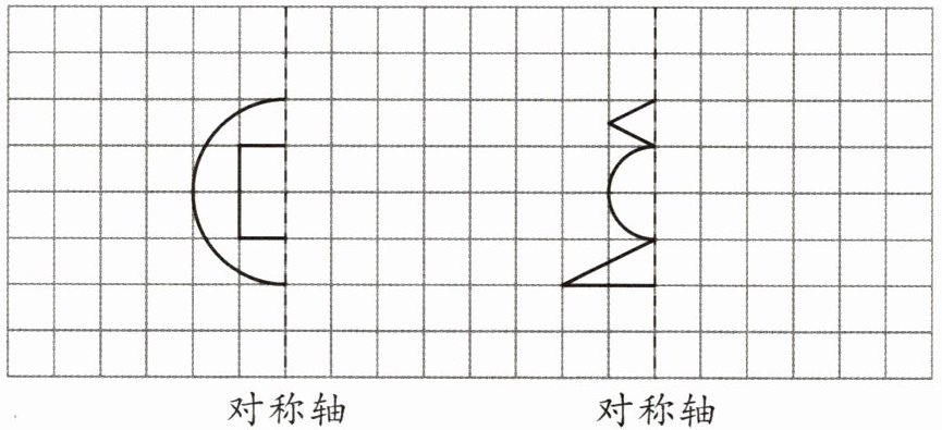 (画图题以图片形式给出答案的话,这里可以描述为:补全左侧图形,使其与右侧图形关于对称轴对称。)