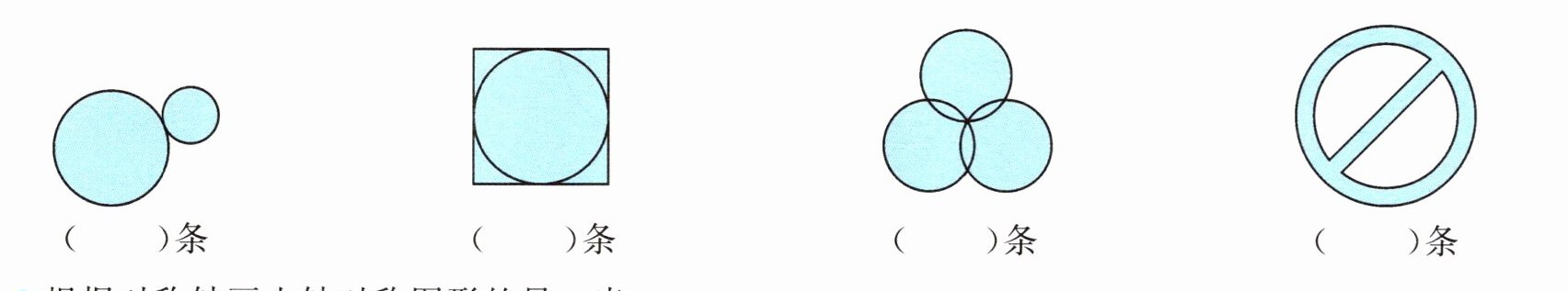 2. 在下列各图形中,你能分别画出几条对称轴?画一画,填一填。