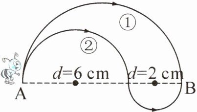 路线①是一个半圆弧,其直径为$AB$,即$d_1 + d_2 = 6 + 2 = 8 cm$。