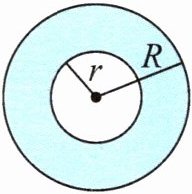 (1) 如果一个圆环的外圆半径是 $ R $,内圆半径是 $ r $,则圆环面积的计算公式是 $ S = \pi R^{2}-\pi r^{2} $,也可以写成(