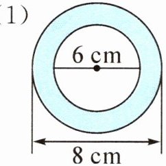 (2) 一个圆环,外圆直径是 $ 8 \, cm $,内圆半径是 $ 3 \, cm $,它的面积是(