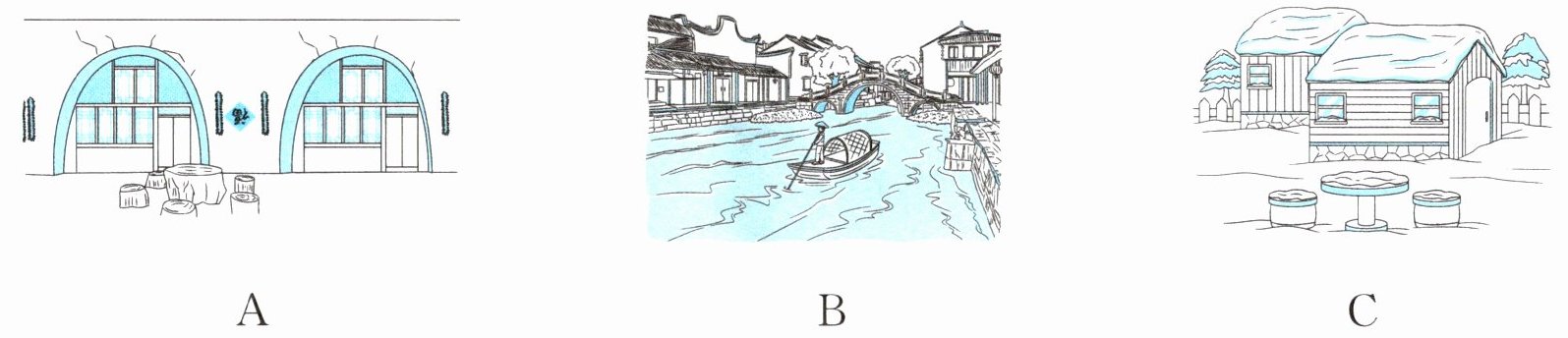 1. 根据娜娜的描述,她的家乡的居住环境应该是下图中的( )。