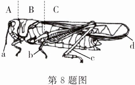 8. 如图所示是蝗虫的外形图,请据图回答下列问题: