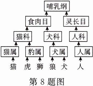 (1)虎、猫、狮、狼、犬这五种动物都归为
