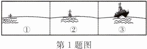 1. 在海边观察远处驶来的轮船时,会出现图中①~③所示的现象,根据这种现象我们可以作出的合理推论是(