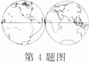4. 在地球表面,图中从 a 到 b 的最短距离约为(