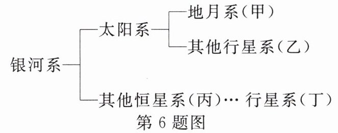 6. 天文学家曾发现在太阳系外存在一颗与地球同类型的天体,被命名为“第二地球”。如图所示是宇宙部分天体系统的关系图,则“第二地球”最可能是哪一系统的中心天体(