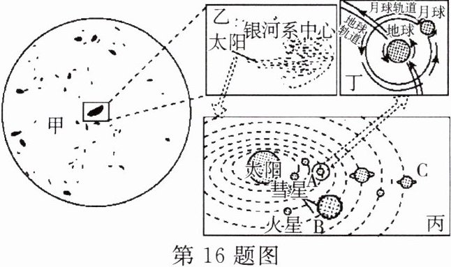 (太阳也是其中的一个黑点)。(4)图甲表示在银河系外还有千亿个类似于银河系的天体系统,称为