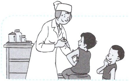 What does my grandma do? She is a nurse. She takes care of many sick people. Look! She is giving an injection to the patient.
