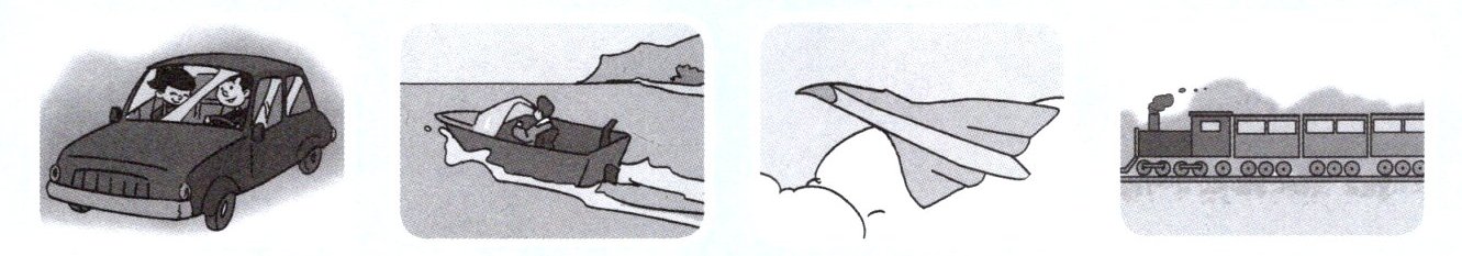 Ⅰ. 1. car 2. motorboat 3. rocket ship 4. train