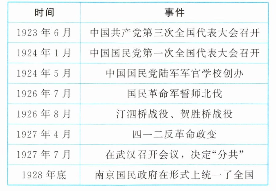 (1)从上述材料中找出第一次国共合作正式建立的标志性事件。