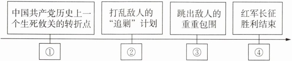16. (2024·青岛改编)在“重走长征路·忆峥嵘岁月”的研学活动中,某同学制作了下面的路线图(部分)。下列与图中①②③④处对应正确的是(