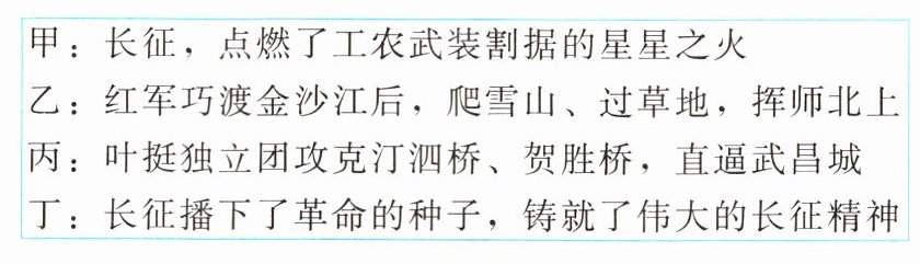 13. 为了弘扬伟大的长征精神,某校学生编排了课本剧《红军不怕远征难》。下列可入选的台词或剧情是(
