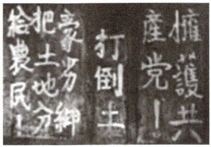 图中文字:拥护共产党!打倒土豪劣绅把土地分给农民!