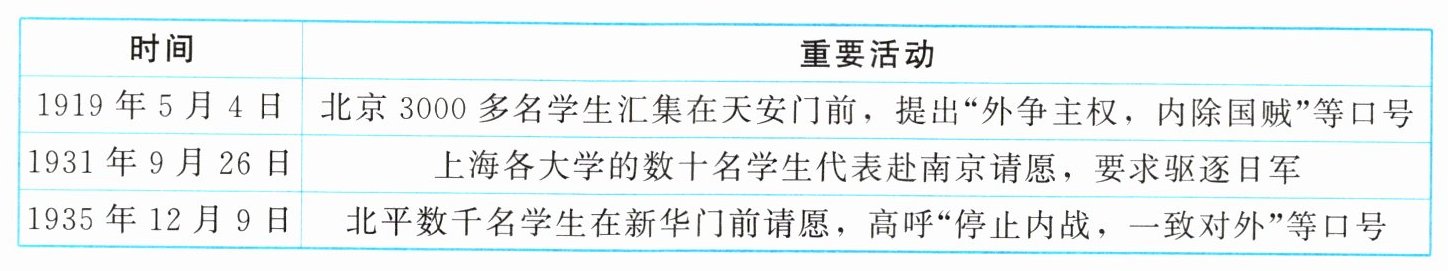 9. 下表列举了我国近代青年学生的一些重要活动。据此可知,他们(
