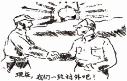 19. (2023·苏州改编)下图是创作于 1937 年 2 月的漫画《现在,我们一致对外吧》。对该画作解读最为准确的是(