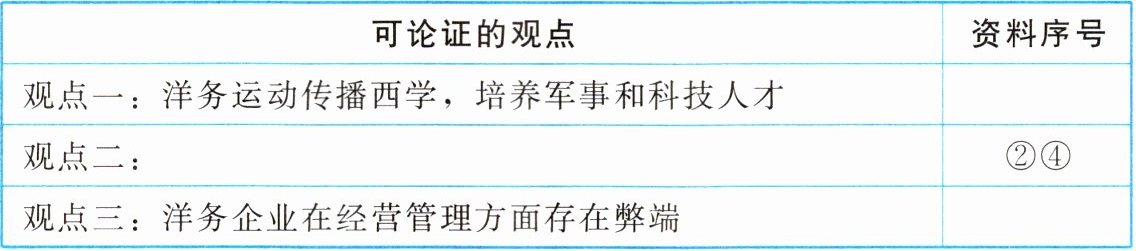 | ②④ || 观点三:洋务企业在经营管理方面存在弊端 |