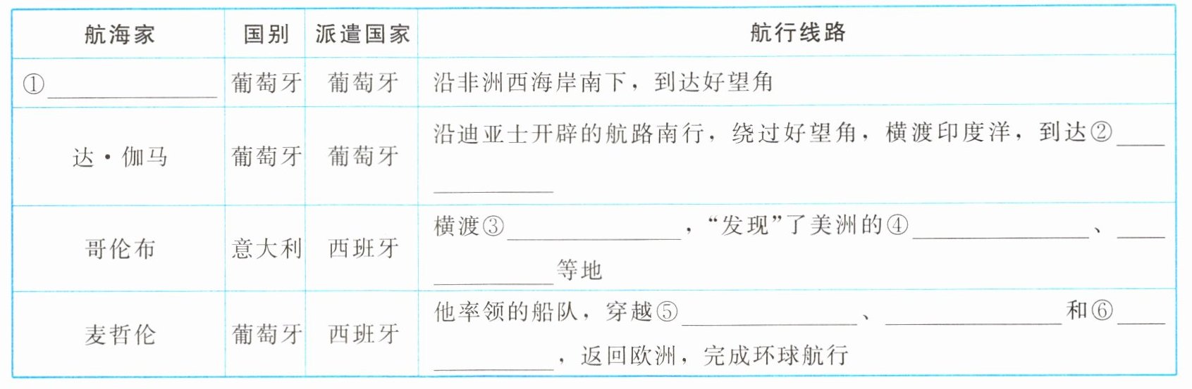 ①迪亚士 ②印度西海岸 ③大西洋 ④古巴 海地 ⑤大西洋 太平洋 ⑥印度洋