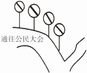 8. 右面为雅典通往公民大会的交通图。其中能顺利到达会场而不被“禁止”的人是(