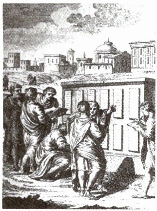 (2)右侧为古罗马颁布《十二铜表法》想象图。
