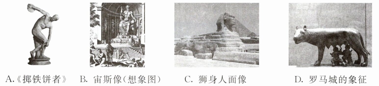 (2)《掷铁饼者》取材于体育竞技活动,是希腊雕塑艺术中的杰作之一。(