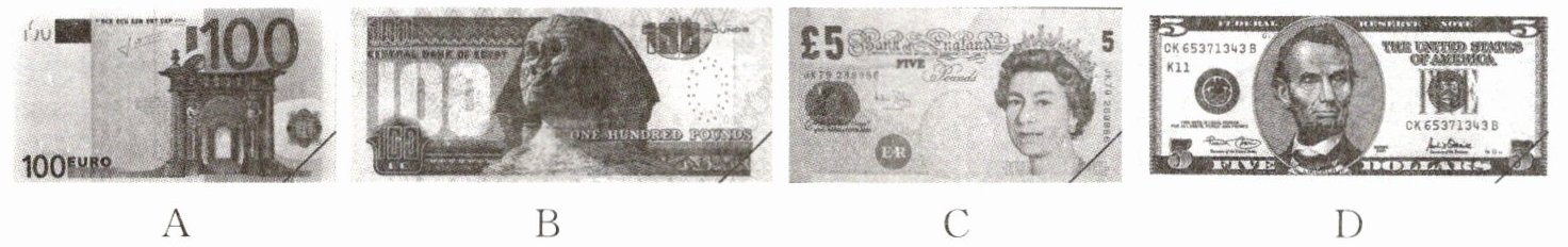 3. 货币被称为一个国家的“名片”。下列纸币中属于埃及的是(