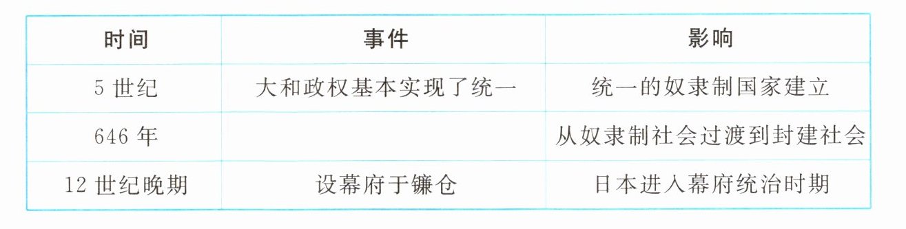2. 下表是对古代日本历史的归纳,其中的空白处对应的事件是(