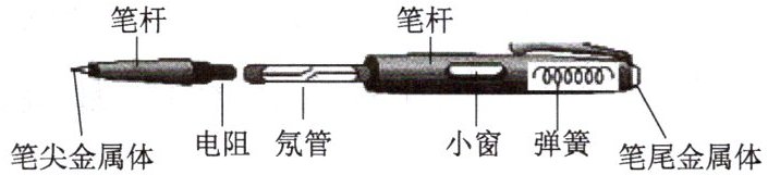 5. 如图为测电笔的构造示意图.在电路检测中,常用到测电笔.测电笔中的电阻是一个阻值在 1 MΩ 以上的高阻值电阻.用测电笔测试 220 V 的电路时,通过人体的电流是多少?